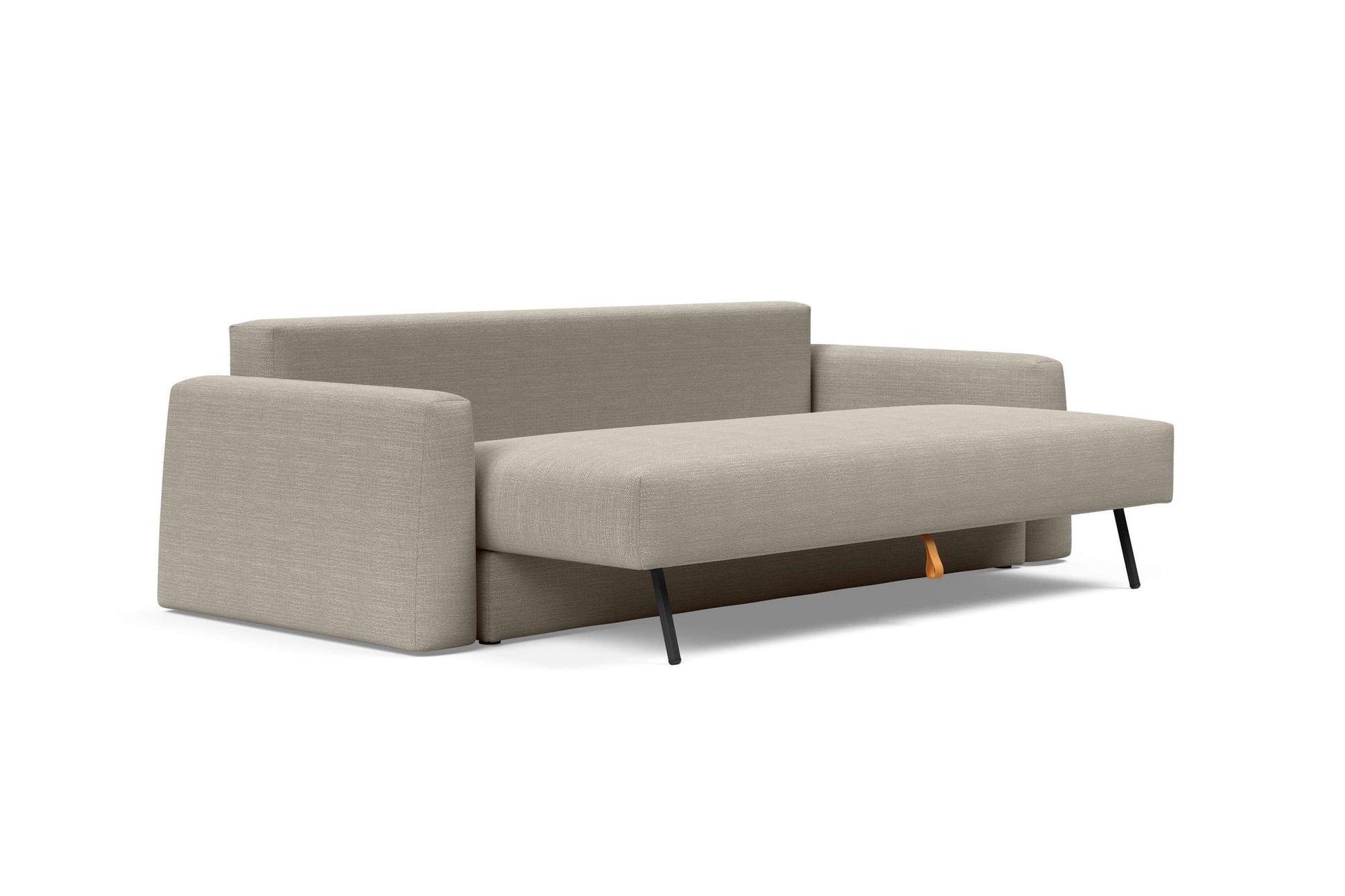 One of the standout features of the Cone sofa bed is its built-in storage box, perfect for stowing away bedding and other essentials, making it a practical choice for smaller homes or apartments. The innovative leg system automatically folds out when you convert it to a bed, providing a sturdy and reliable sleeping surface.