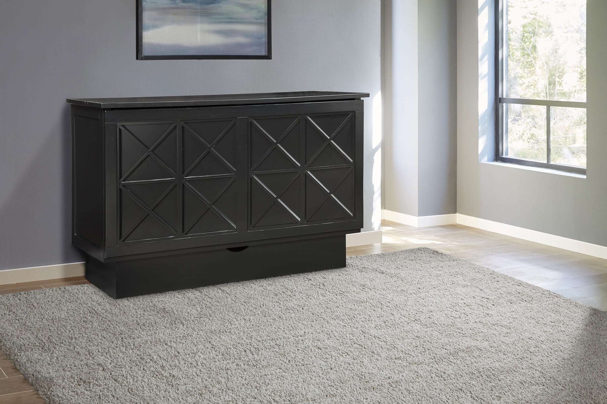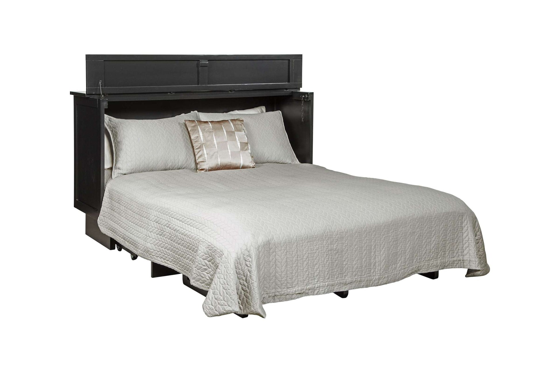The Essex Queen Murphy Cabinet Bed is not just a bed; it's a multifunctional piece of furniture that enhances your living space. With its beautiful Tudor-style criss-cross molding, this cabinet bed offers a sophisticated touch while providing a comfortable sleeping area for guests. Unlike traditional sleeper sofas, the Essex cabinet bed boasts a compact design that takes up 40% less space, making it an ideal choice for smaller rooms or apartments.