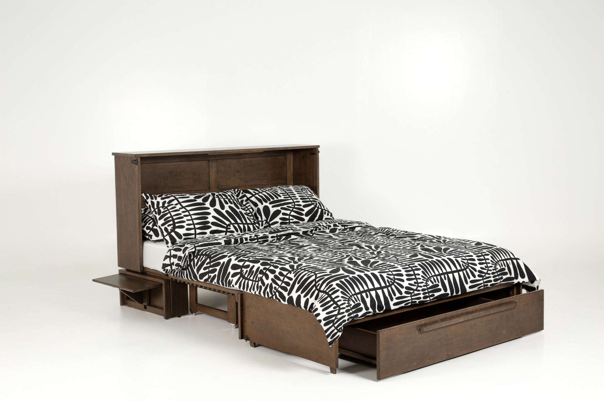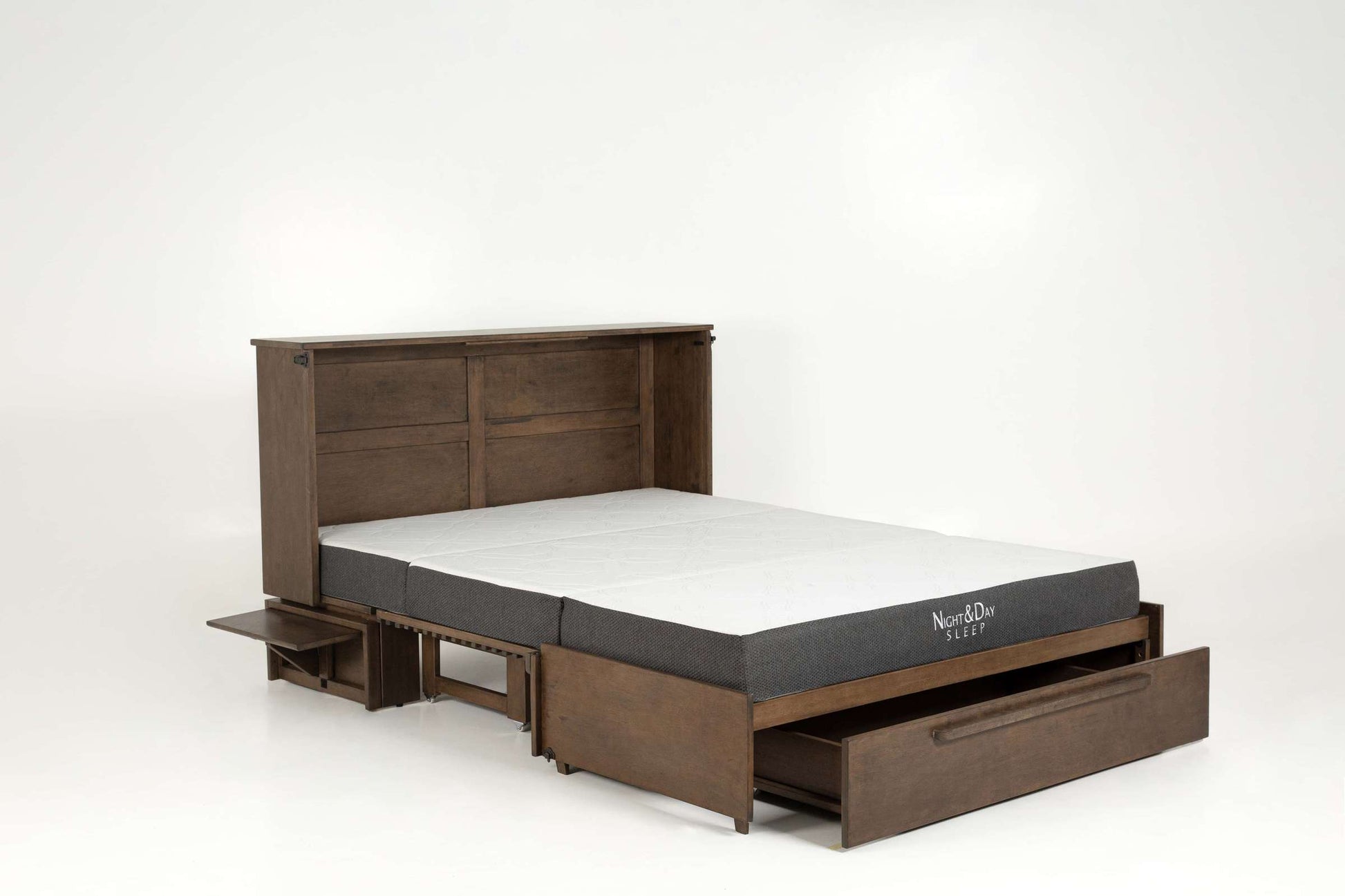 One of the standout features of this cabinet bed is its ease of use. In just a minute, you can transform it from a beautiful cabinet into a spacious queen bed. The included folding side trays provide extra space for drinks or personal items, while the smooth-rolling storage drawer keeps your linens and essentials neatly tucked away.