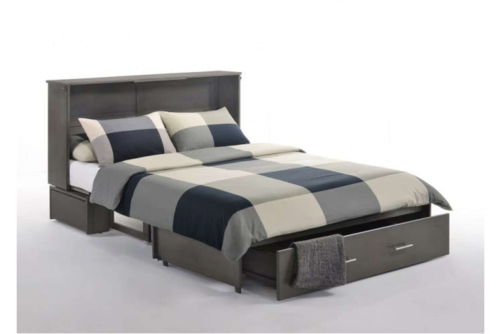 Introducing the Sagebrush Queen Murphy Cabinet Bed, a unique blend of functionality and elegance. This cabinet bed is designed for those who value both style and practicality in their living spaces. With its solid hardwood construction and sophisticated stonewash finish, it not only serves as a beautiful piece of furniture but also provides a comfortable sleeping solution for your guests.