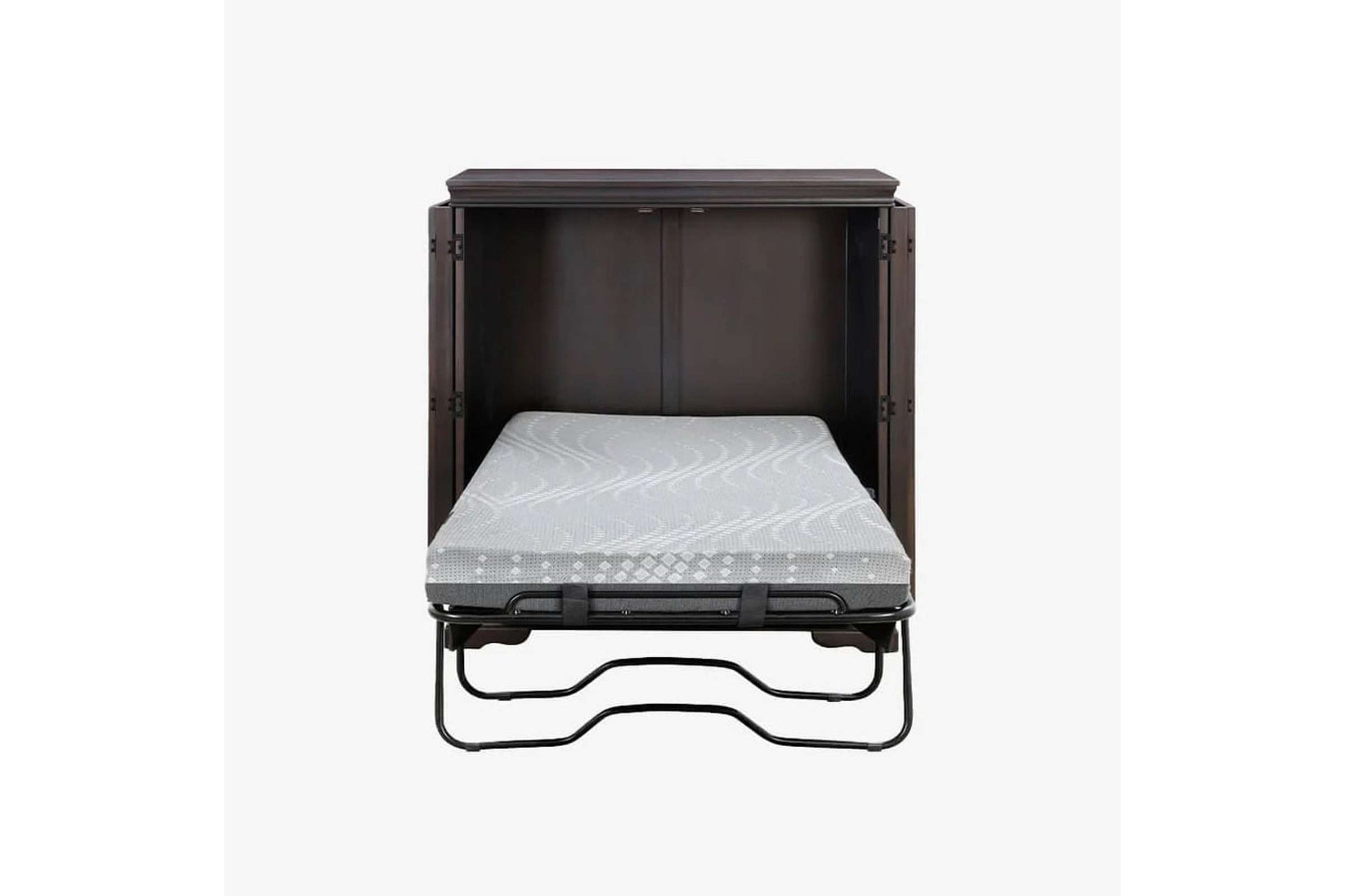 The San Sebastian Espresso Twin Murphy Cabinet Bed is an exceptional choice for those seeking a versatile and space-saving furniture solution. This cabinet bed arrives fully assembled and includes a comfortable gel memory foam mattress, ensuring a restful night's sleep for your guests. Its clever design allows for easy conversion from a stylish cabinet to a cozy bed, making it a practical addition to any home.