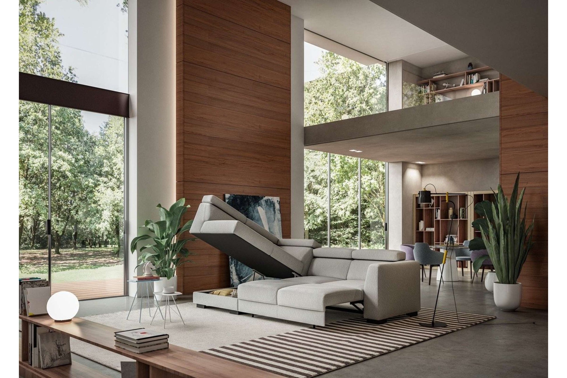 This sectional features a dual motion sleeper function, allowing you to easily convert it from a sofa to a bed. The adjustable seat depth and ratchet headrests provide personalized comfort, while the open-able storage chaise offers convenient space for blankets and pillows. Whether you're entertaining friends or enjoying a quiet evening at home, this sofa sleeper is the perfect companion.