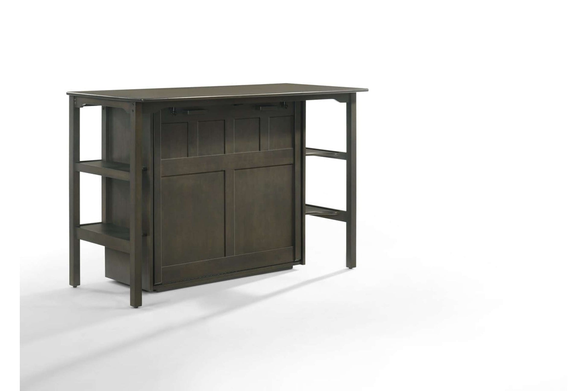 The Siesta Stonewash Twin Desk Murphy Cabinet is the perfect blend of style and practicality. Designed by Night & Day Furniture, this cabinet bed offers a quick and easy solution for accommodating guests without sacrificing your living space. With its unique engineering, you can effortlessly convert it from a standing height desk to a comfortable twin bed in less than a minute.