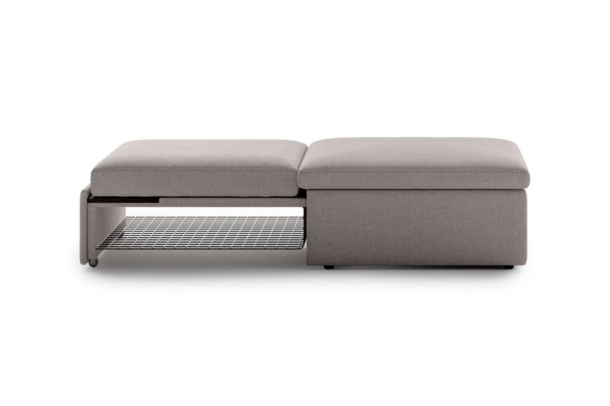 Introducing the Sleeper Ottoman Oasis 01, a multifunctional piece that seamlessly fits into any modern home. This ottoman is not just a stylish addition to your décor; it also serves as a practical solution for guests or family members needing a comfortable place to sleep. With its innovative design, you can easily access a solid birch table top for your drinks or snacks, while the hidden mattress offers a cozy cot-sized sleeping option.