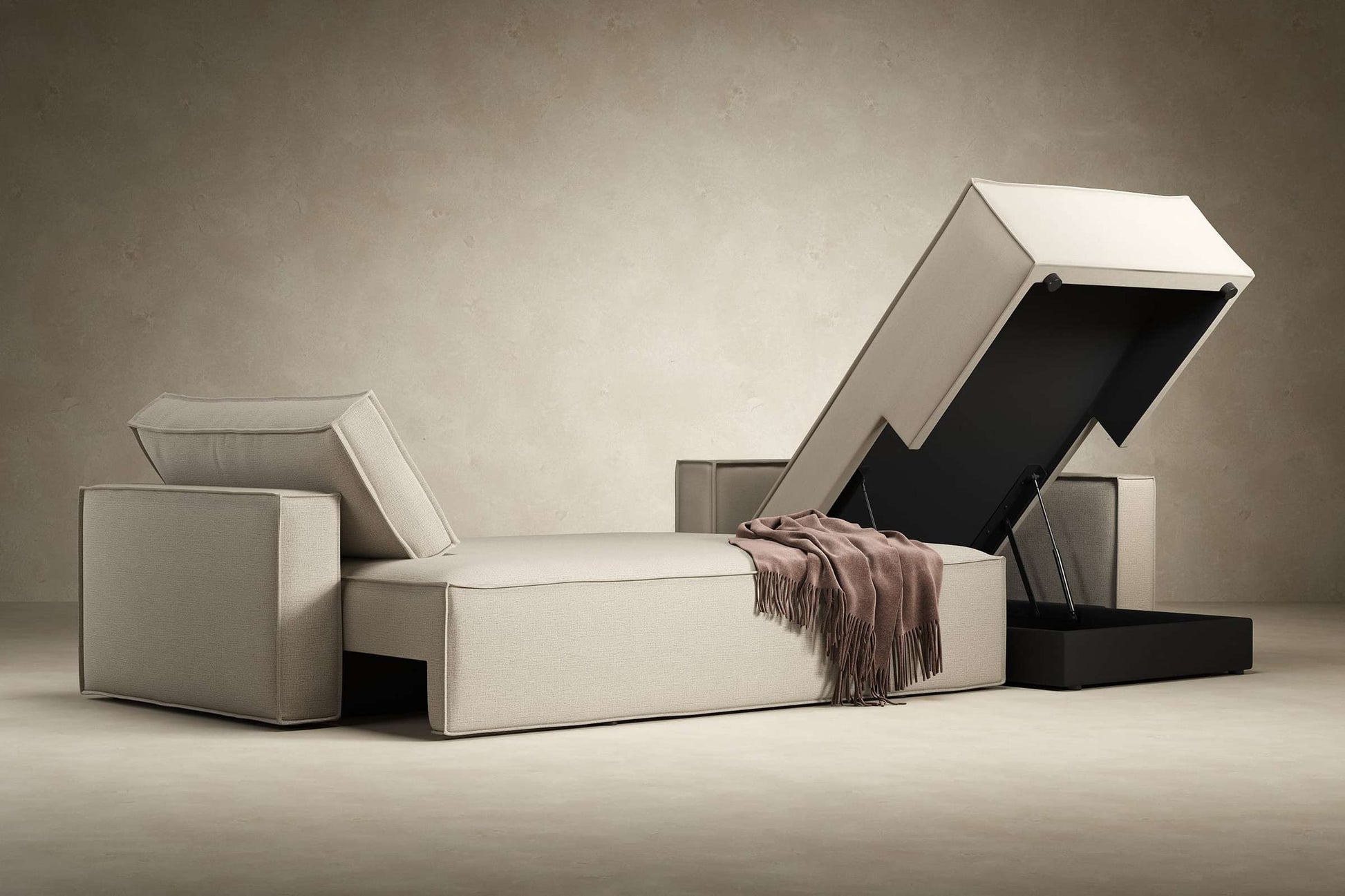 Introducing the Standard Sofa Bed w/Lounger Adario Basmati, an elegant and functional addition to your home. This sofa bed is designed to cater to modern living, providing a comfortable seating area that easily converts into a bed for overnight guests. Its modular lounger can be positioned on either side, offering flexibility to fit any room layout.