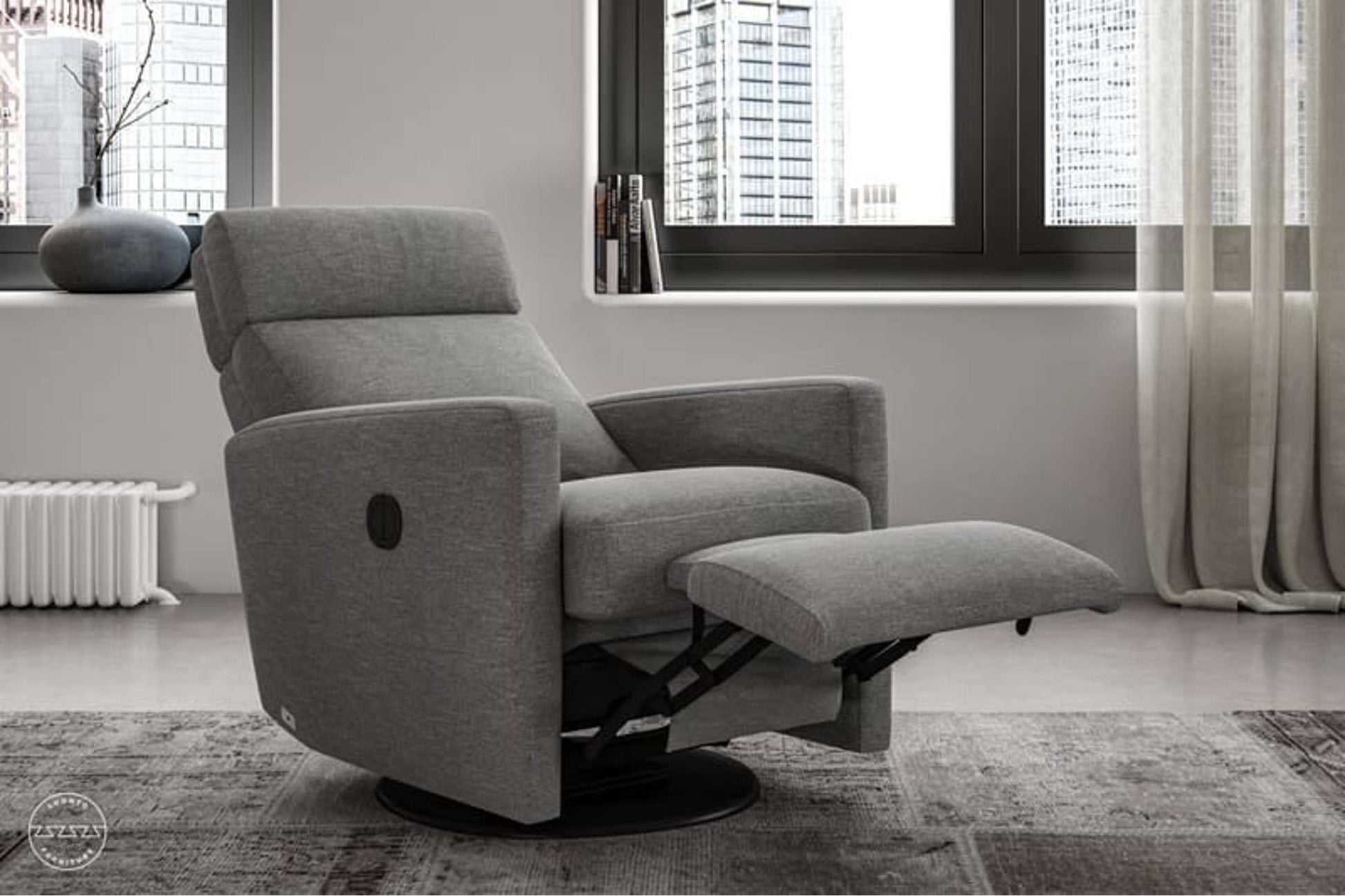 The Track Recliner Chair is a stylish and functional piece designed for comfort and relaxation. With its modern aesthetic, it fits seamlessly into any decor, making it a versatile choice for your home. This recliner offers a unique rocking and swiveling base, allowing you to find your perfect position effortlessly. The deep, angled seat provides exceptional comfort, while the balanced shoulder to lumbar support ensures you feel great, whether you're reading a book or watching your favorite show.