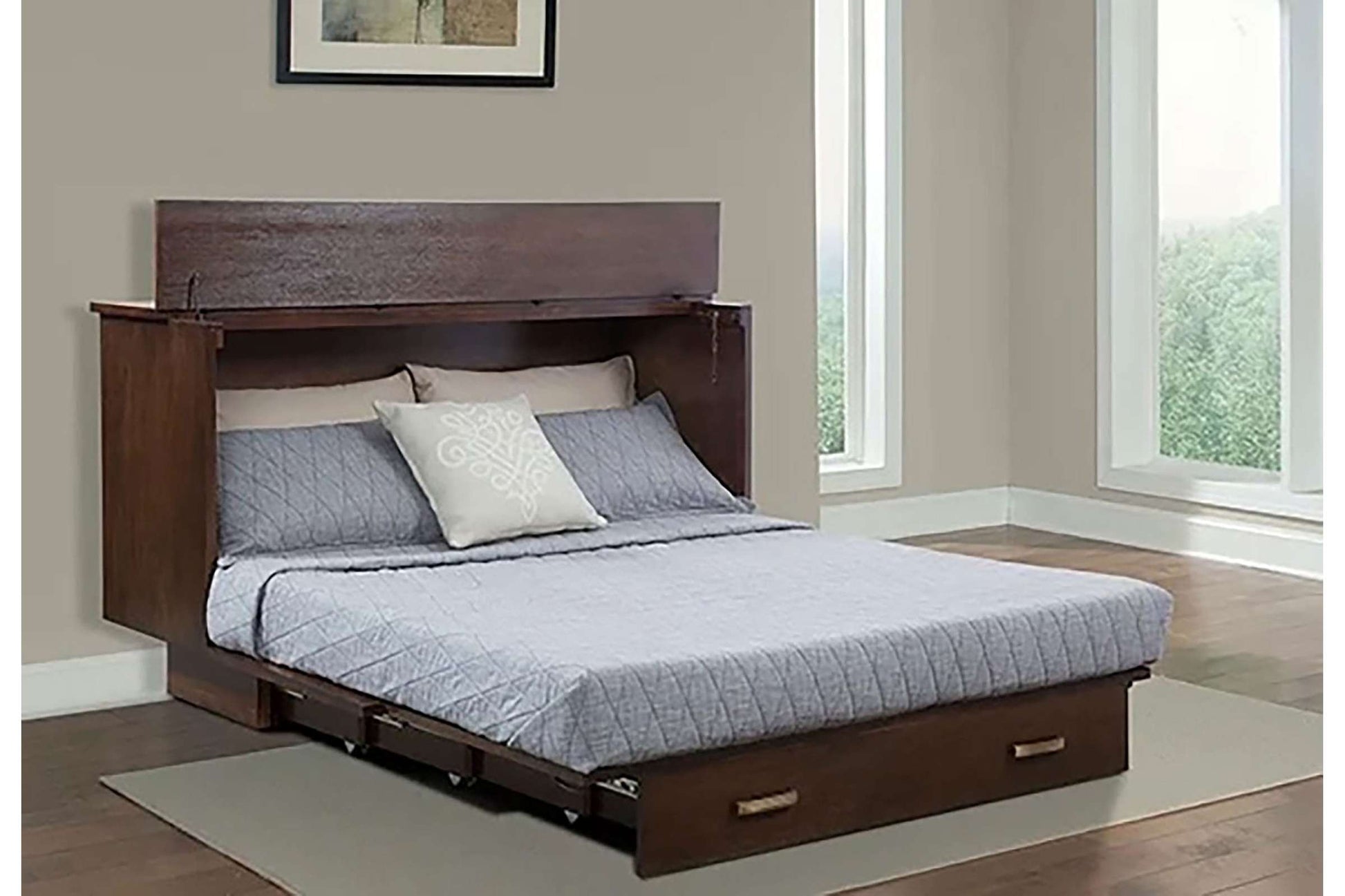 The Traditional Murphy Cabinet Bed is an exceptional piece of furniture designed to enhance both style and functionality in any room. With its elegant medium brown finish, this cabinet bed not only serves as a practical sleeping solution but also adds a touch of sophistication to your decor. The innovative Flip Top feature allows for easy access to your belongings, making it perfect for small spaces where every inch counts.