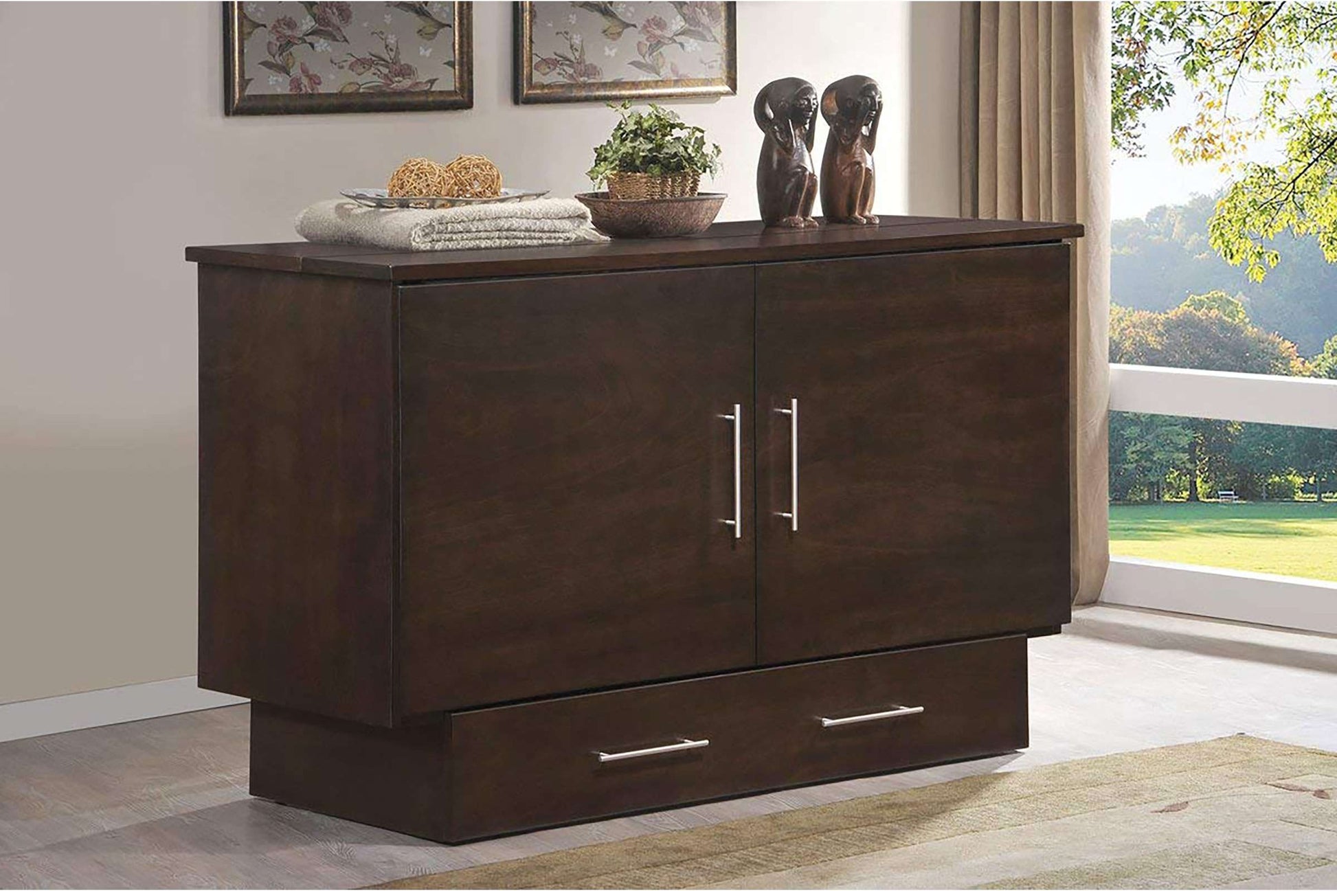 If you're looking for a space-saving solution that doesn't compromise on style or comfort, the Traditional Murphy Cabinet Bed in Coffee/Espresso is the perfect choice. This innovative piece of furniture offers a sleek design that fits seamlessly into any home decor while providing a comfortable sleeping area for guests. With its rich espresso finish and modern brushed aluminum hardware, it adds a touch of elegance to your room.
