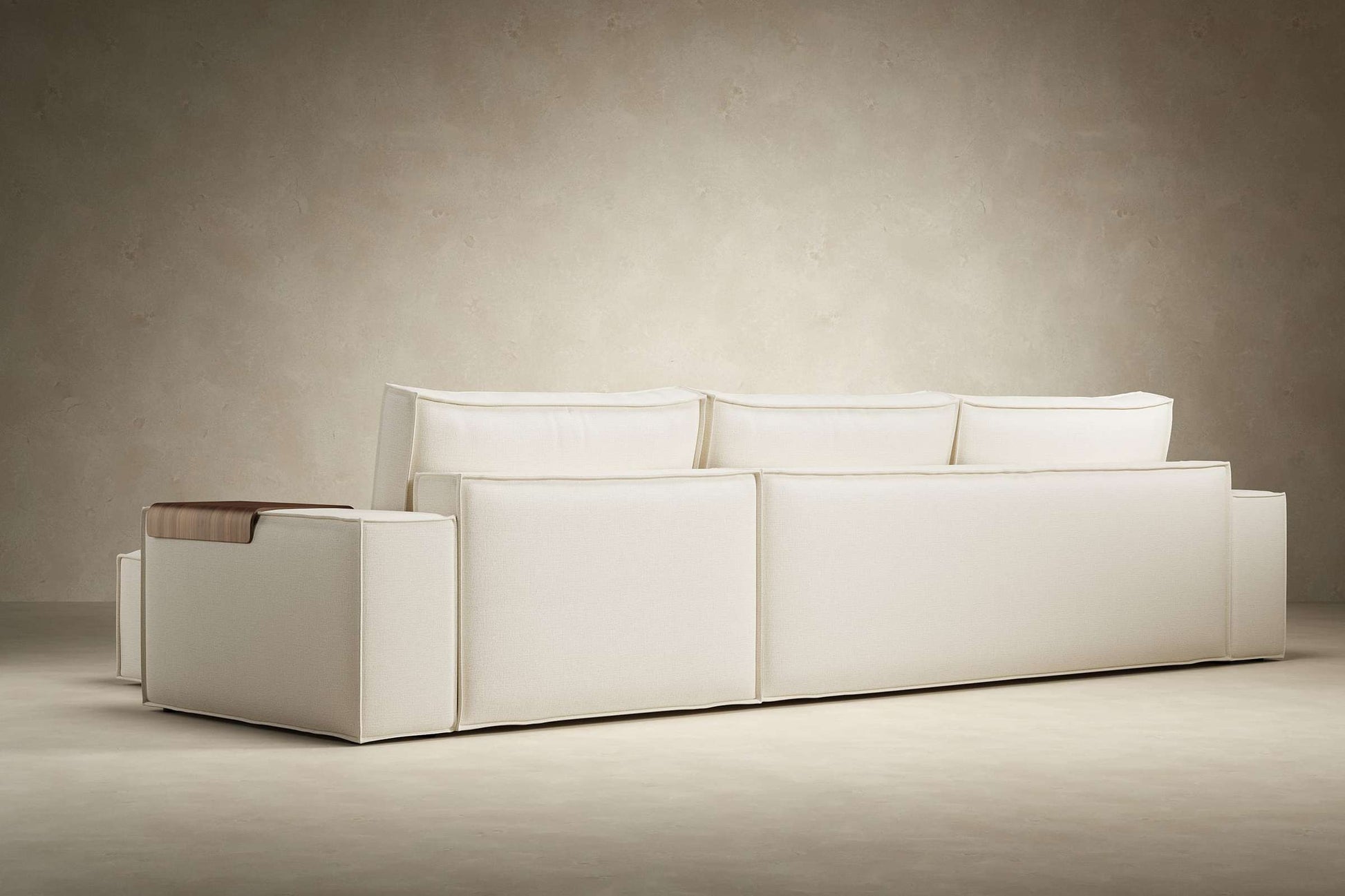 Transform your living space with the Wide Sofa Bed w/Lounger in Adario Taupe, a stylish and functional addition to any home. This versatile sofa bed is designed to provide comfort and convenience, making it perfect for both everyday use and special occasions. The wide arms not only enhance the cozy aesthetic but also serve as a practical solution when paired with the walnut wood tray, turning your sofa into a makeshift side table.